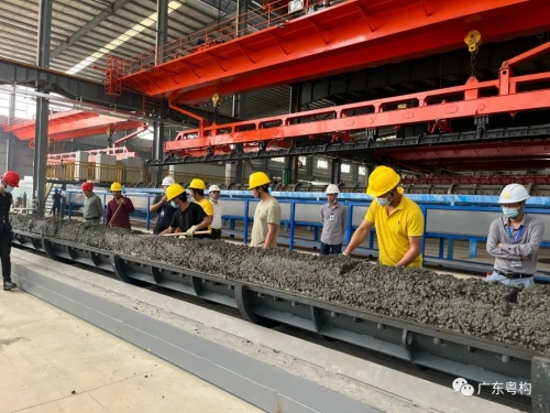 當天上午,廣東粵構(gòu)構(gòu)件生產(chǎn)中心組織對管樁一車間自動化生產(chǎn)線進行了調(diào)試驗收工作。佛山電建集團有限公司黨委副書記、總經(jīng)理吳學(xué)慶,廣東粵構(gòu)新型建材產(chǎn)業(yè)有限公司董事長陳永斌、副董事長陳進慶、總經(jīng)理章杰春、常務(wù)副總經(jīng)理張敏堅及相關(guān)負責(zé)人參加了此次試生產(chǎn)儀式。經(jīng)過連續(xù)多日的調(diào)試準備,該自動化生產(chǎn)線的試生產(chǎn)運行基本達到預(yù)期目的,各項生產(chǎn)工作順利推進。