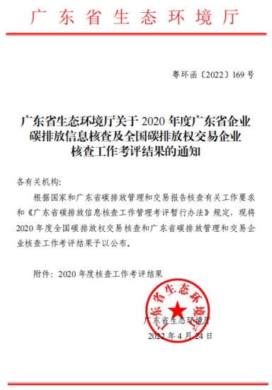 4月24日,廣東省生態(tài)環(huán)境廳發(fā)布《廣東省生態(tài)環(huán)境廳關(guān)于2020年度廣東省企業(yè)碳排放信息核查及全國碳排放權(quán)交易企業(yè)核查工作考評結(jié)果的通知》(粵環(huán)函[2022]169號),節(jié)能減排中心在全省30家核查機構(gòu)中脫穎而出,2020年度核查工作總評結(jié)果為“優(yōu)”。