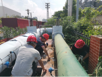 主管網(wǎng)作為園區(qū)供熱核心管道,由于停運(yùn)次數(shù)較少,在國慶假期園區(qū)企業(yè)停汽期間對(duì)主管網(wǎng)定檢是保障節(jié)后管道安全運(yùn)行的關(guān)鍵工作。10月1—3日,公司根據(jù)相關(guān)規(guī)定要求對(duì)園區(qū)內(nèi)蒸汽管網(wǎng)主管道定期檢查,并聯(lián)系特檢院對(duì)主管道作檢驗(yàn)。雖正值高溫天氣,但現(xiàn)場的工作人員即使汗流浹背也全程跟進(jìn)并及時(shí)解答特檢院提出的問題,按時(shí)按質(zhì)按量完成定檢工作。