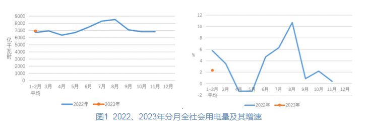 1-2月,全國全社會用電量13834億千瓦時,同比增長2.3%。