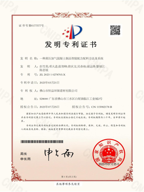 通過多年來的努力,恒益環(huán)保建材公司的專利件數(shù)日益增多。這些專利成果為公司今后的發(fā)展積蓄了前進(jìn)的動(dòng)力,進(jìn)一步提升了產(chǎn)品的科技含量。下一步,公司將繼續(xù)加強(qiáng)專利技術(shù)成果的推廣應(yīng)用和創(chuàng)新創(chuàng)效,以自主知識(shí)產(chǎn)權(quán)優(yōu)勢(shì)促進(jìn)技術(shù)創(chuàng)新,不斷提高核心競爭力,為推動(dòng)加氣行業(yè)高質(zhì)量發(fā)展做出新的貢獻(xiàn)。(環(huán)保建材 吳麗珊)