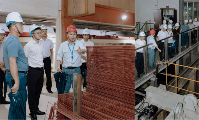 佛山市恒益環(huán)保建材有限公司鄧大進總工程師在ALC板材生產(chǎn)現(xiàn)場作介紹