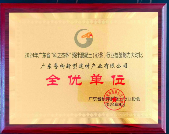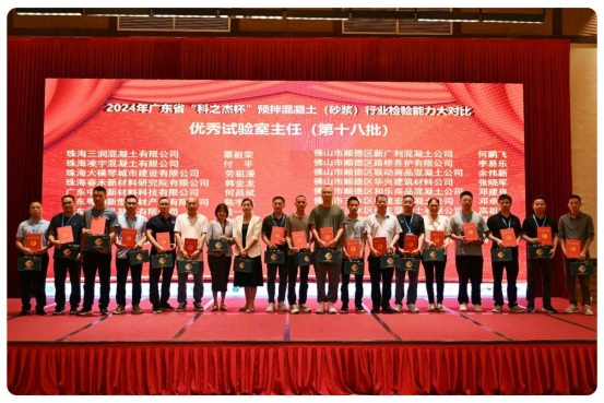 9月26日,粵構(gòu)公司參加了2024年廣東省“科之杰杯”預(yù)拌混凝土(砂漿)行業(yè)檢驗?zāi)芰Υ髮Ρ然顒?,?jīng)過激烈角逐與嚴(yán)格評審,榮獲“全優(yōu)單位”稱號,這一殊榮是對粵構(gòu)公司產(chǎn)品質(zhì)量的高度認(rèn)可,及其技術(shù)創(chuàng)新能力和專業(yè)檢驗水平的有力證明。同時,粵構(gòu)公司商砼試驗室主任陳宇飛,憑借其卓越的專業(yè)技能與不懈的努力,獲得了“2024年廣東省預(yù)拌混凝土行業(yè)優(yōu)秀試驗室主任”的榮譽稱號,為公司贏得了又一份榮耀。