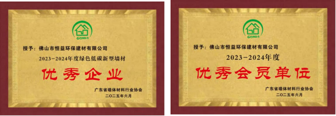 近日,佛山電建集團(tuán)有限公司(簡稱:電建集團(tuán))下屬企業(yè)佛山市恒益環(huán)保建材有限公司(簡稱:恒益環(huán)保建材公司)在廣東省墻體材料行業(yè)協(xié)會2023-2024年度評選中榮獲“綠色低碳新型墻材優(yōu)秀企業(yè)”“優(yōu)秀會員單位”兩項(xiàng)榮譽(yù)稱號,同時(shí),公司員工邵東鑫獲評“廣東省墻體材料行業(yè)協(xié)會先進(jìn)工作者”。