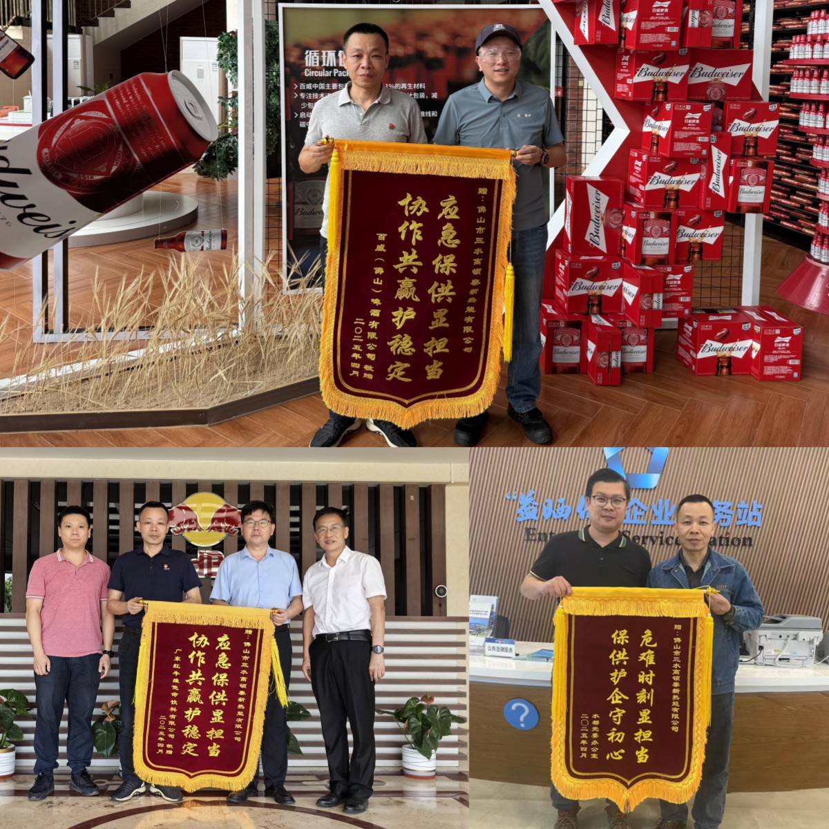 為表彰高頓泰公司在保供攻堅中的突出貢獻:水都黨委辦公室特授予“危難時刻顯擔當 保供護企守初心”錦旗;園區(qū)重點用汽企業(yè)廣東紅牛維他命飲料有限公司、百威(佛山)啤酒有限公司相繼致贈“應(yīng)急保供顯擔當 協(xié)作共贏護穩(wěn)定”錦旗。以上榮譽是水都園區(qū)政企對高頓泰公司關(guān)鍵時刻挺身而出、勇于擔當?shù)某浞挚隙?,更是對“國企姓黨、服務(wù)為民”初心的生動映照。